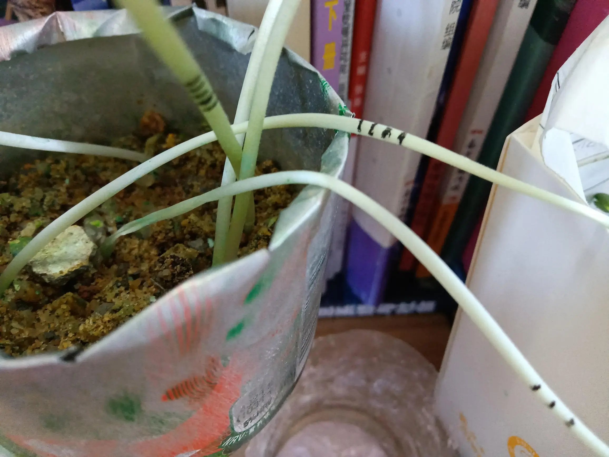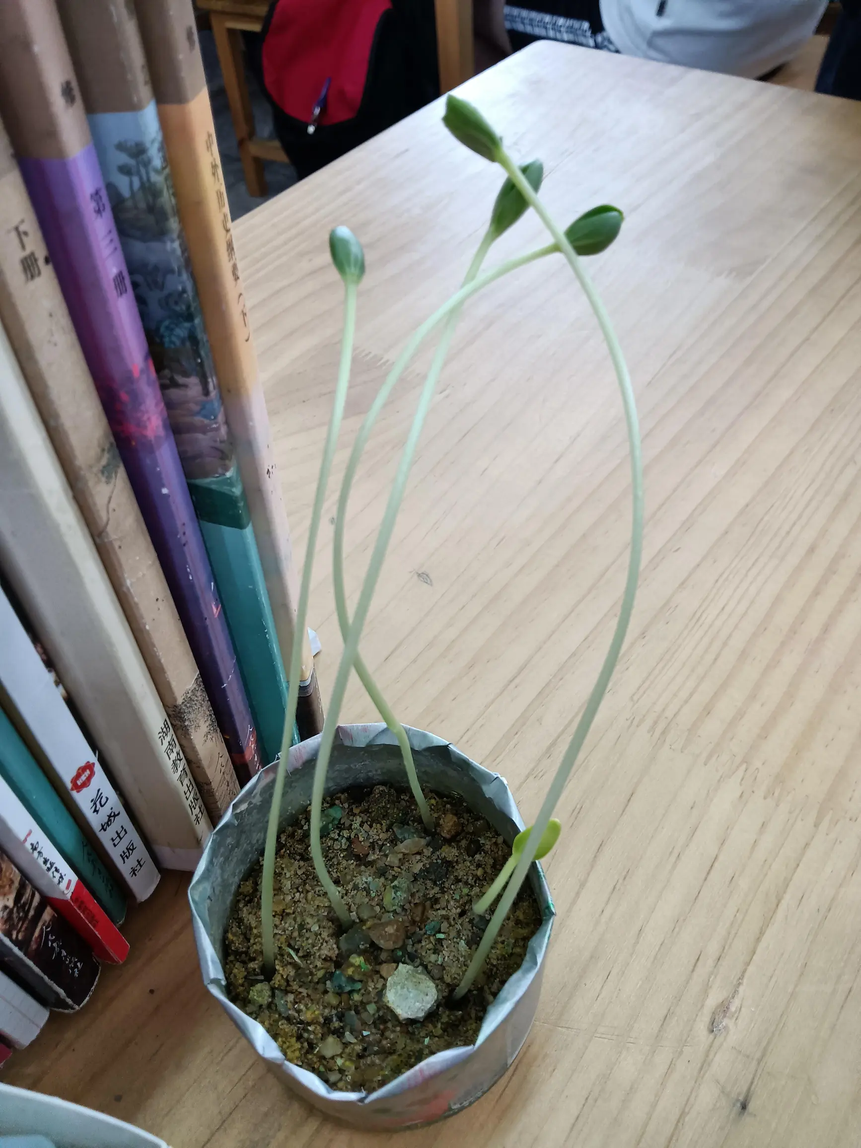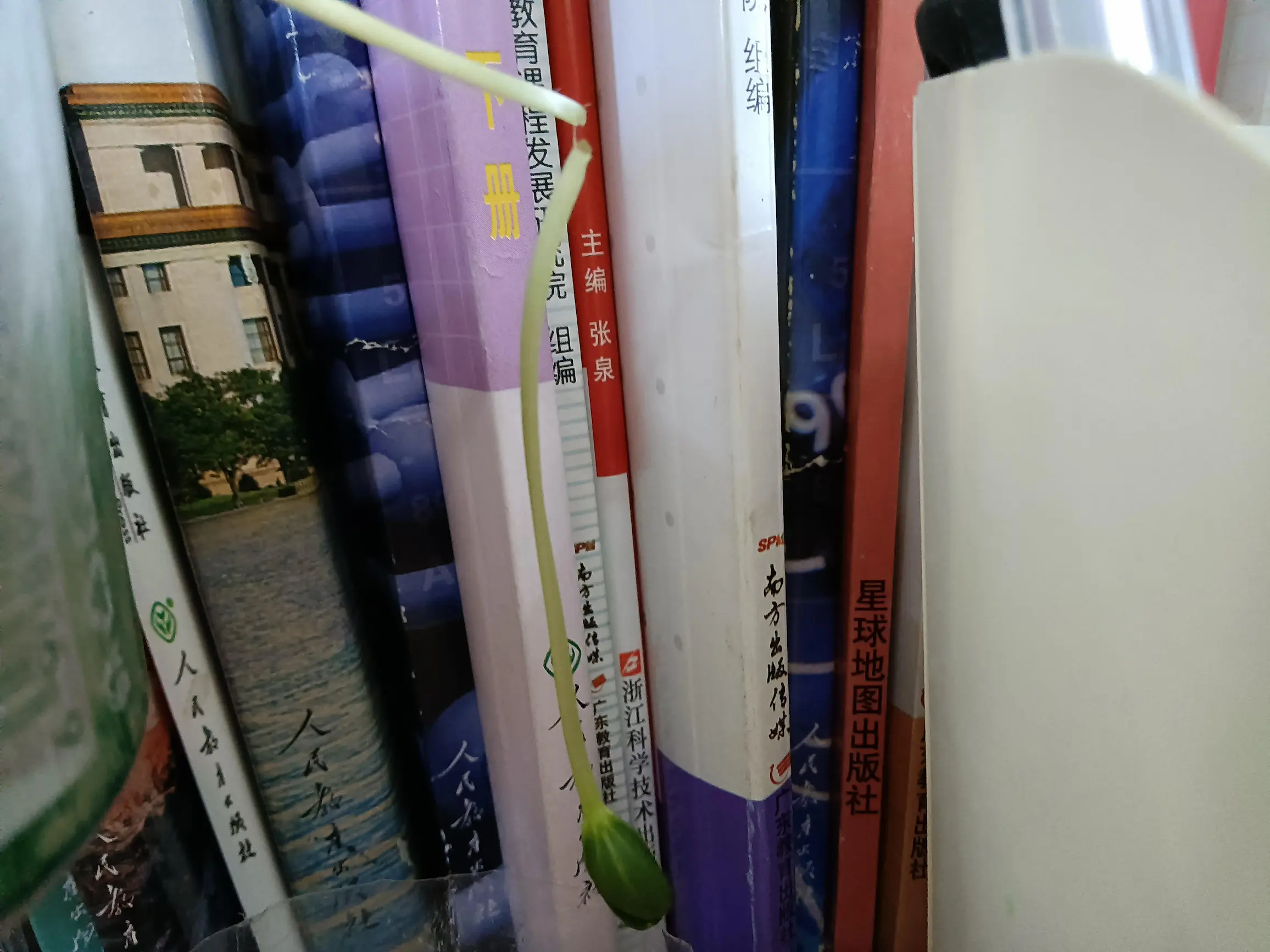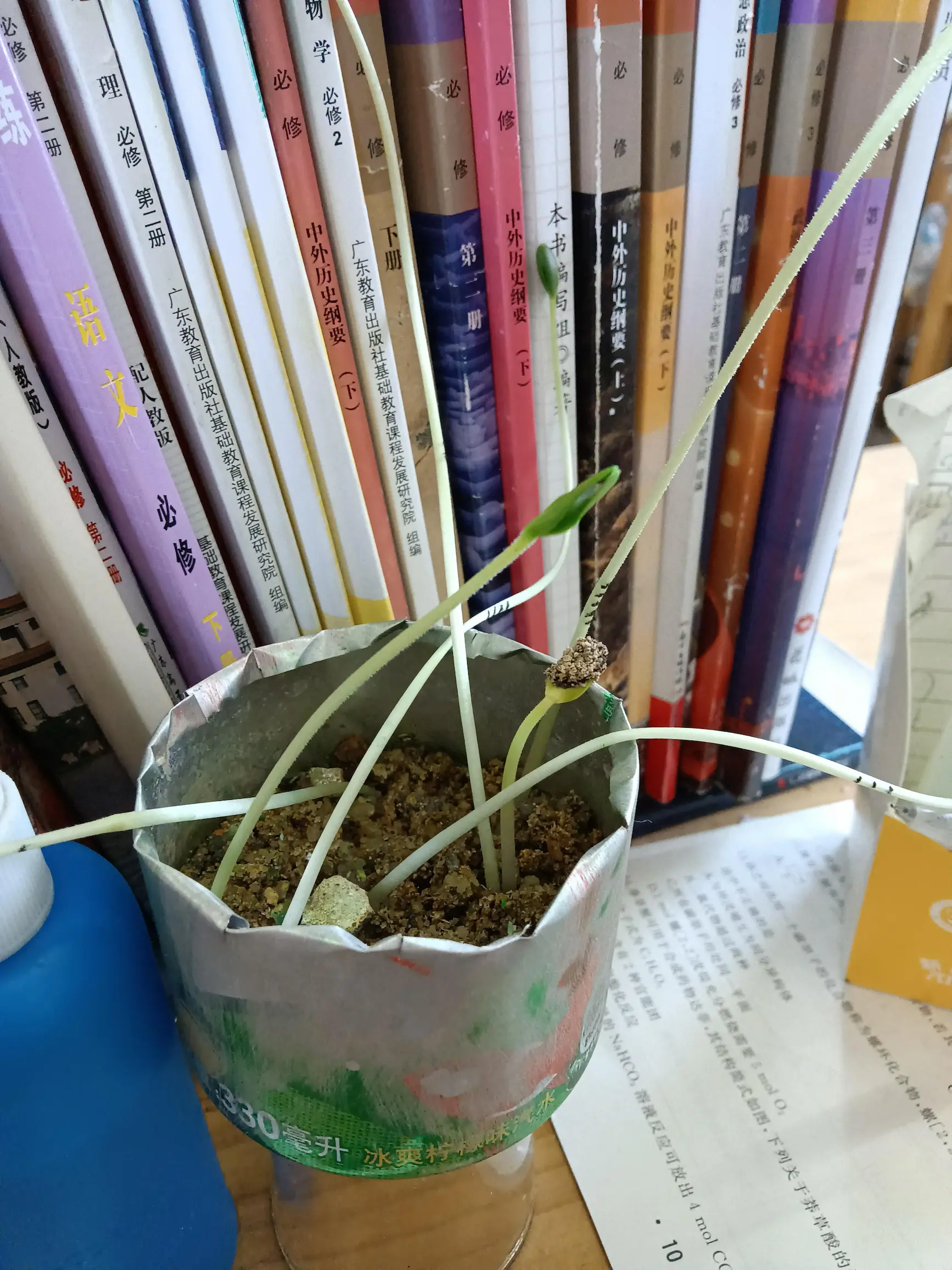 然而,今天下午,出了“大事故”。在放书的时候我实在是太不小心了,一下子压断了好几株,现在是剩下 2 株还健在,第 7 株发育良好,最让我期待的一株被我压死了。( ≧Д≦)