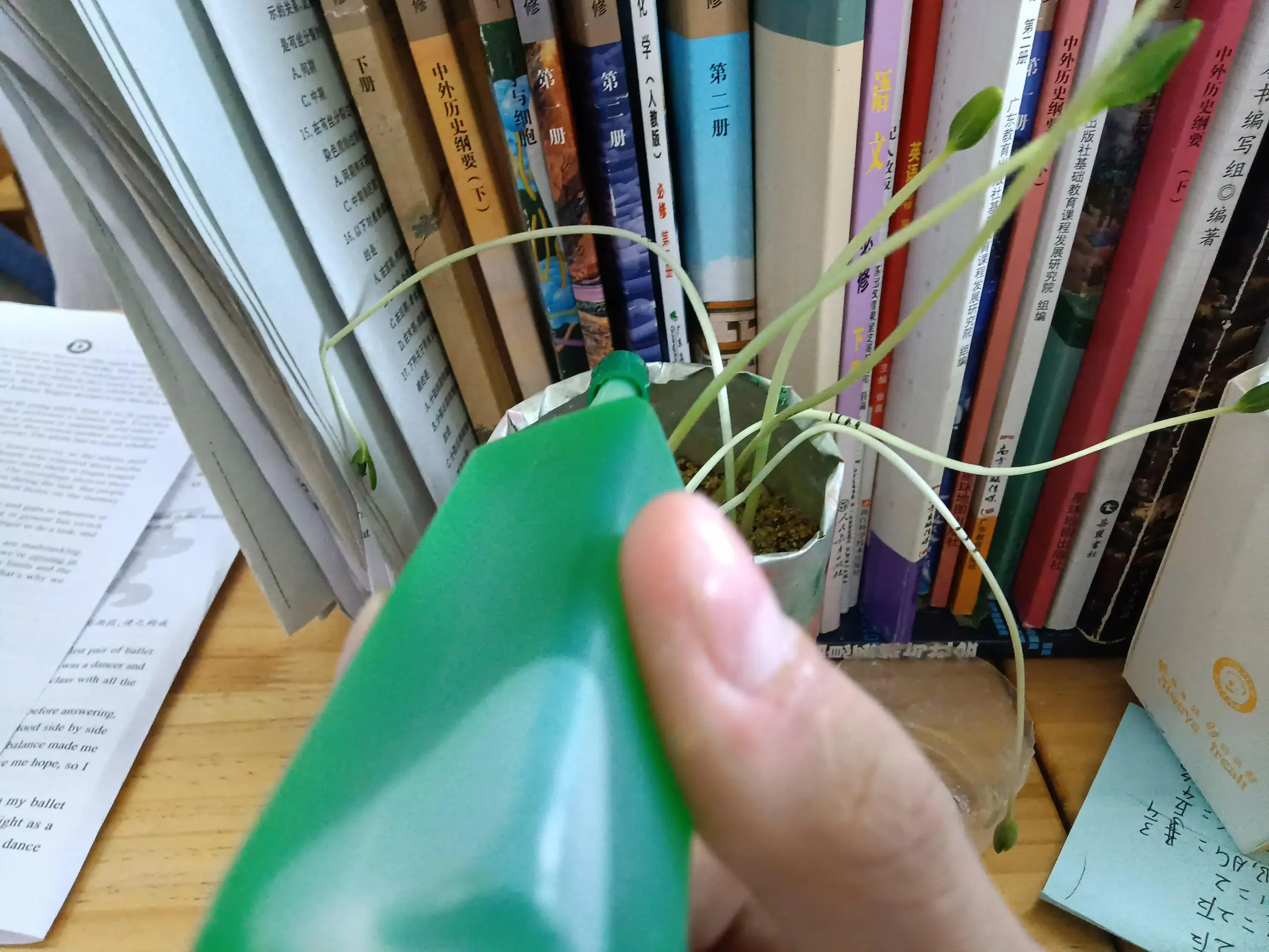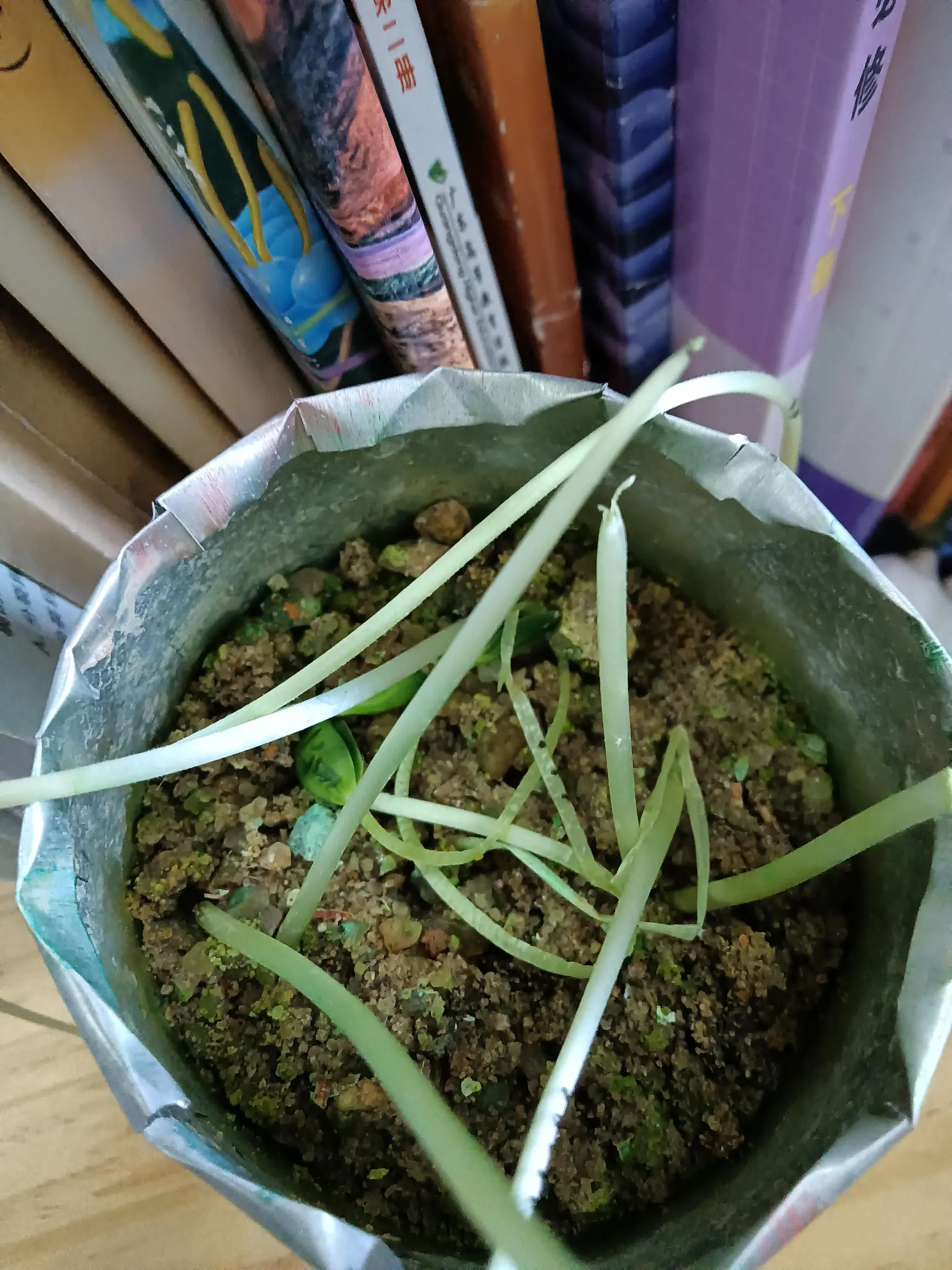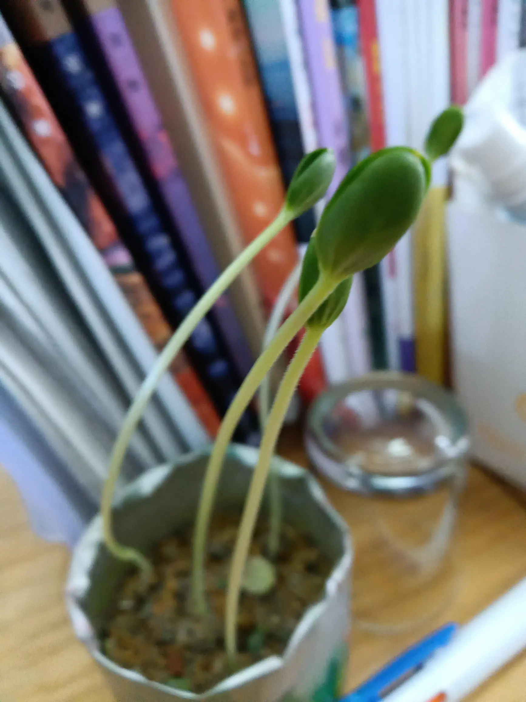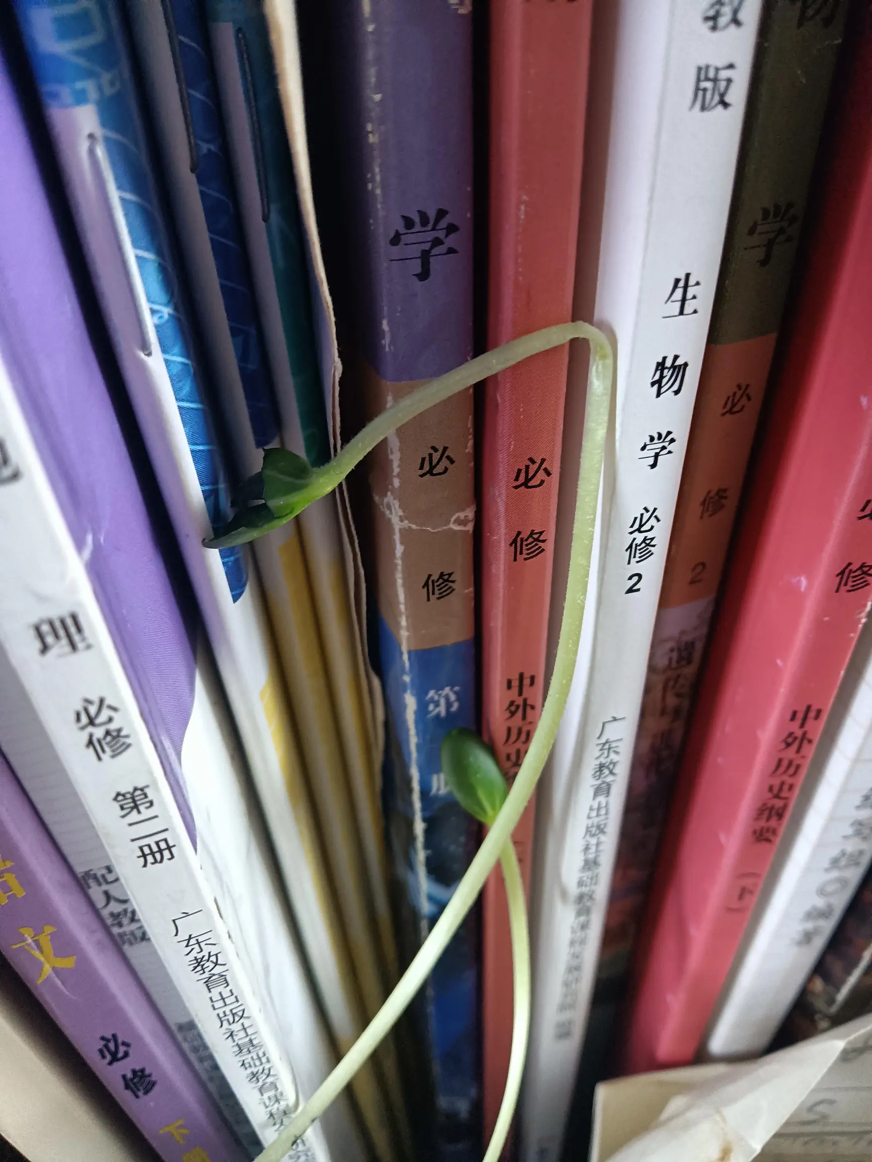 然而,今天下午,出了“大事故”。在放书的时候我实在是太不小心了,一下子压断了好几株,现在是剩下 2 株还健在,第 7 株发育良好,最让我期待的一株被我压死了。( ≧Д≦)