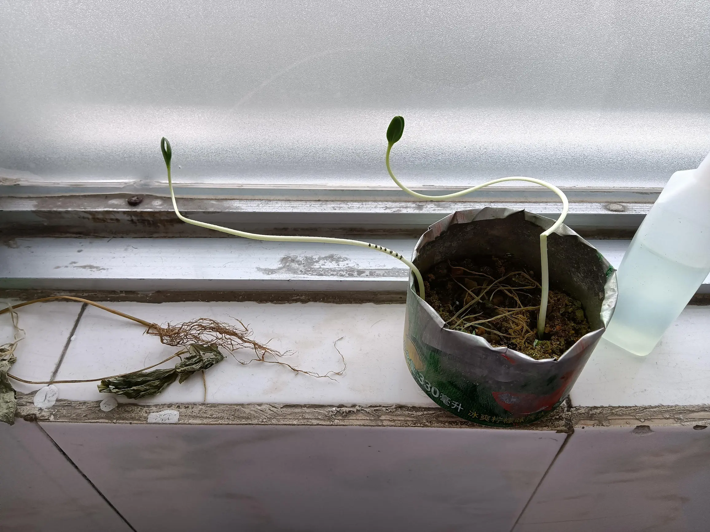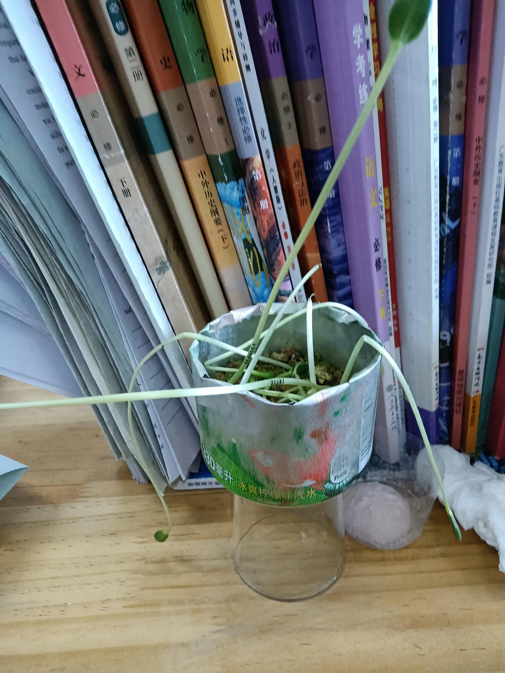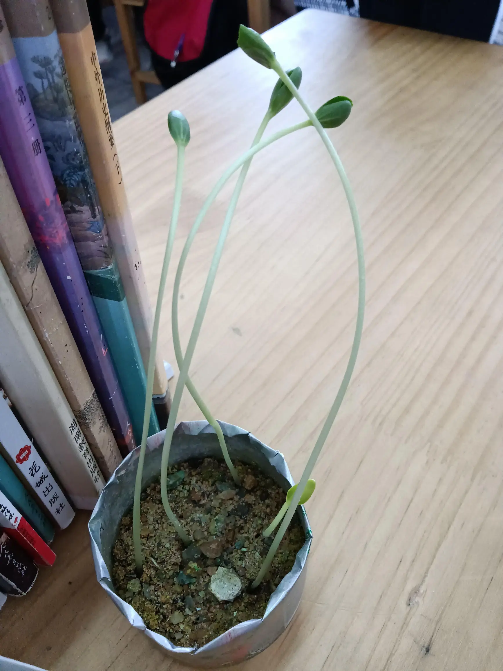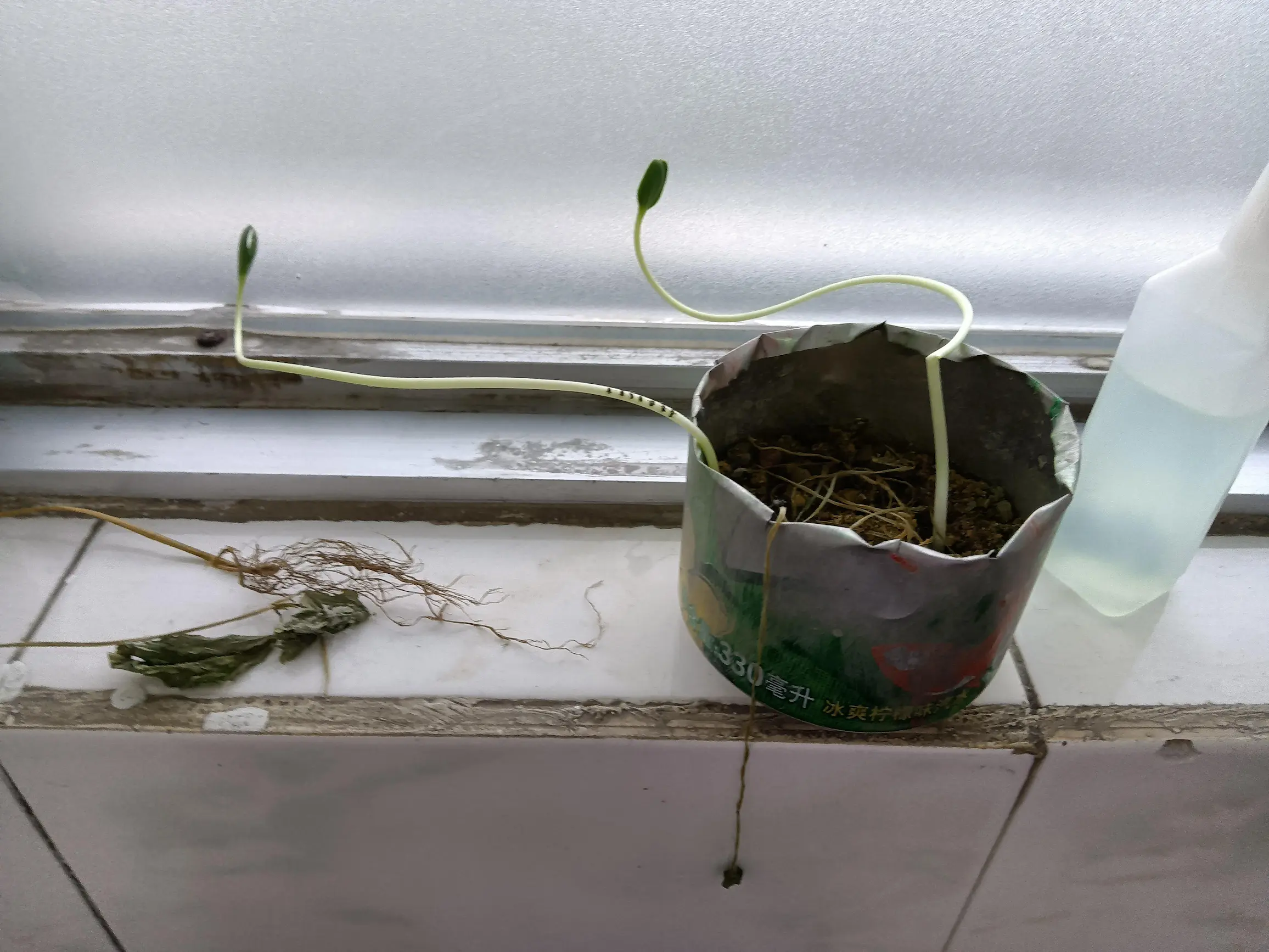 然而,今天下午,出了“大事故”。在放书的时候我实在是太不小心了,一下子压断了好几株,现在是剩下 2 株还健在,第 7 株发育良好,最让我期待的一株被我压死了。( ≧Д≦)