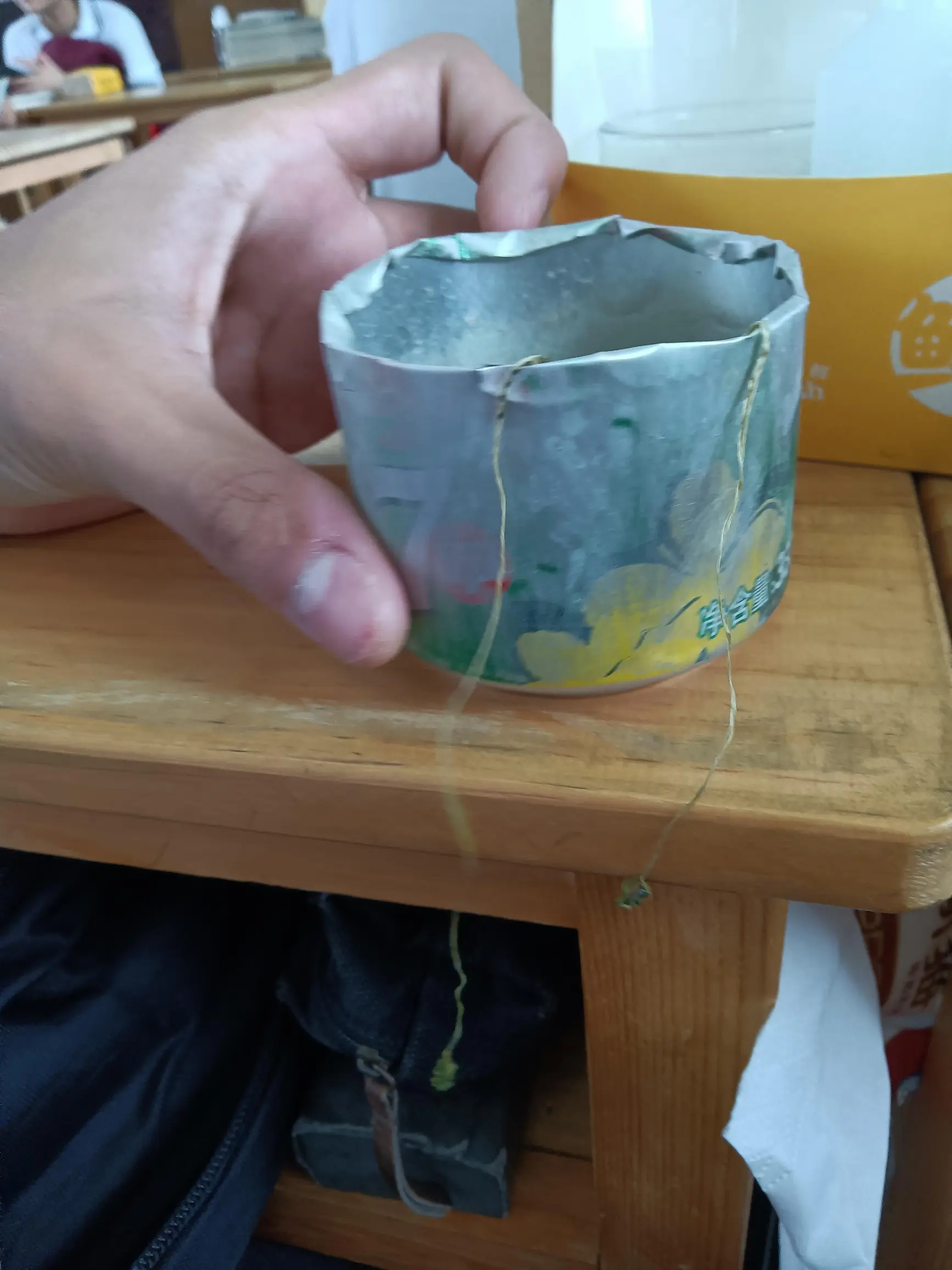 终于在一个星期后冒出了芽,又过了一个星期,苗的高度已经有 4 厘米了,根部受到小“桶”的限制,生长受到影响,于是我同学 C 那找来一个饮料瓶,大概从二分之一的位置切开,洗净,由于原本是饮料瓶,我很不喜欢容器或其他什么东西外面有一堆图案之类的,就拿了砂纸打磨,但是并没有打磨干净。