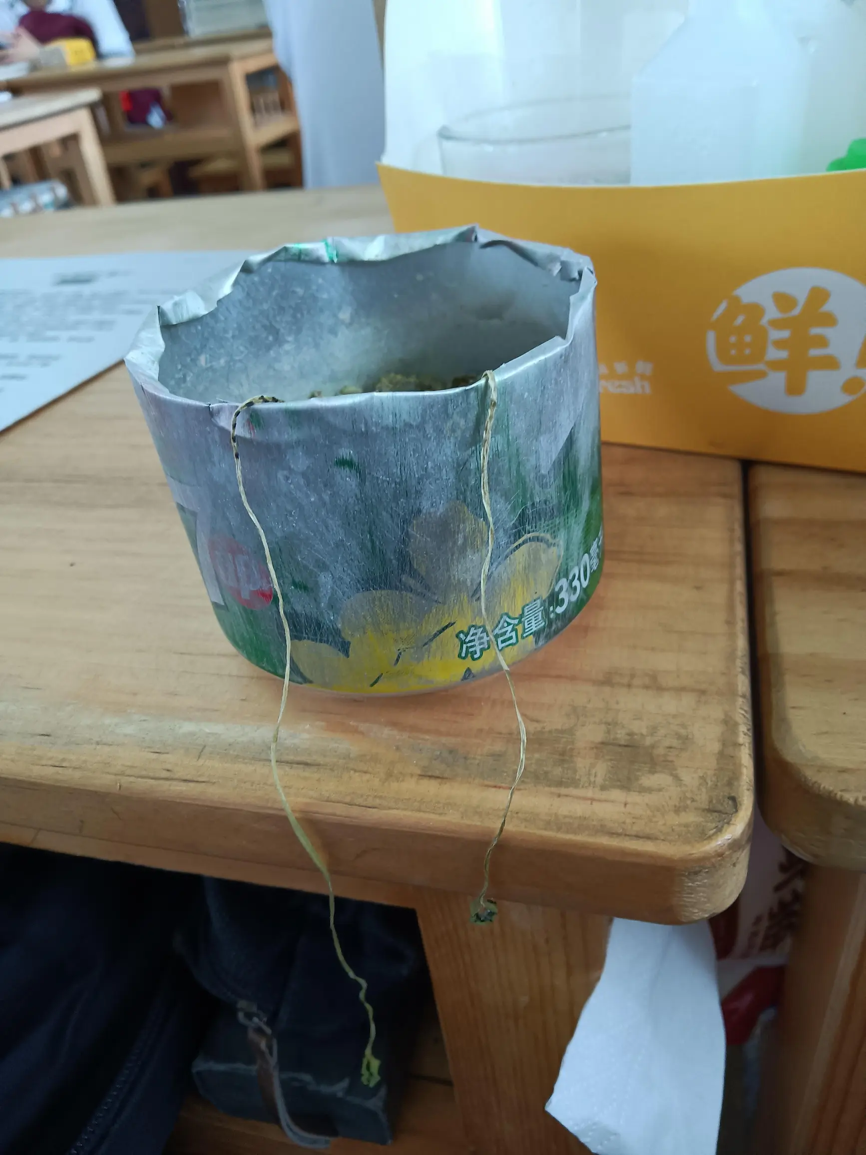 大概是这一天,Honzer 带来了一颗黄豆种子,然后把种子放在一个大概有 4 立方厘米的小“桶”里并加上水。我是第一次种这些植物,请教了同学 A 和同学 B。